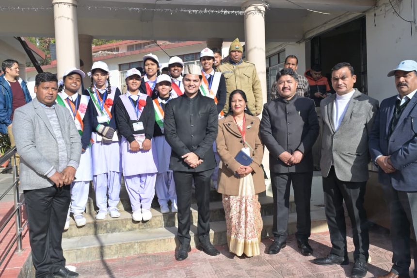 रुद्रप्रयाग, 26 जनवरी। 77वें गणतंत्र दिवस के शुभ अवसर पर जनपद रुद्रप्रयाग में गणतंत्र दिवस को हर्षोल्लास, उत्साह एवं देशभक्ति के वातावरण में मनाया गया। मुख्य कार्यक्रम जिला मुख्यालय रुद्रप्रयाग में आयोजित हुआ। प्रातः 8:00 बजे स्कूली छात्र-छात्राओं द्वारा जिला अस्पताल से रुद्रप्रयाग मुख्य बाजार होते हुए पेट्रोल पंप तिराहा तक भव्य प्रभात रैली निकाली गई। रैली में देशभक्ति की भावना से ओत-प्रोत छात्र-छात्राओं, आमजन, एनसीसी कैडेट्स, एनएसएस स्वयंसेवकों सहित विभिन्न वर्गों की सहभागिता रही। प्रतिभागियों ने तिरंगा लहराते हुए राष्ट्रभक्ति के नारे लगाए। रैली के माध्यम से आमजन को यूसीसी (समान नागरिक संहिता) के संबंध में भी जागरूक किया गया।