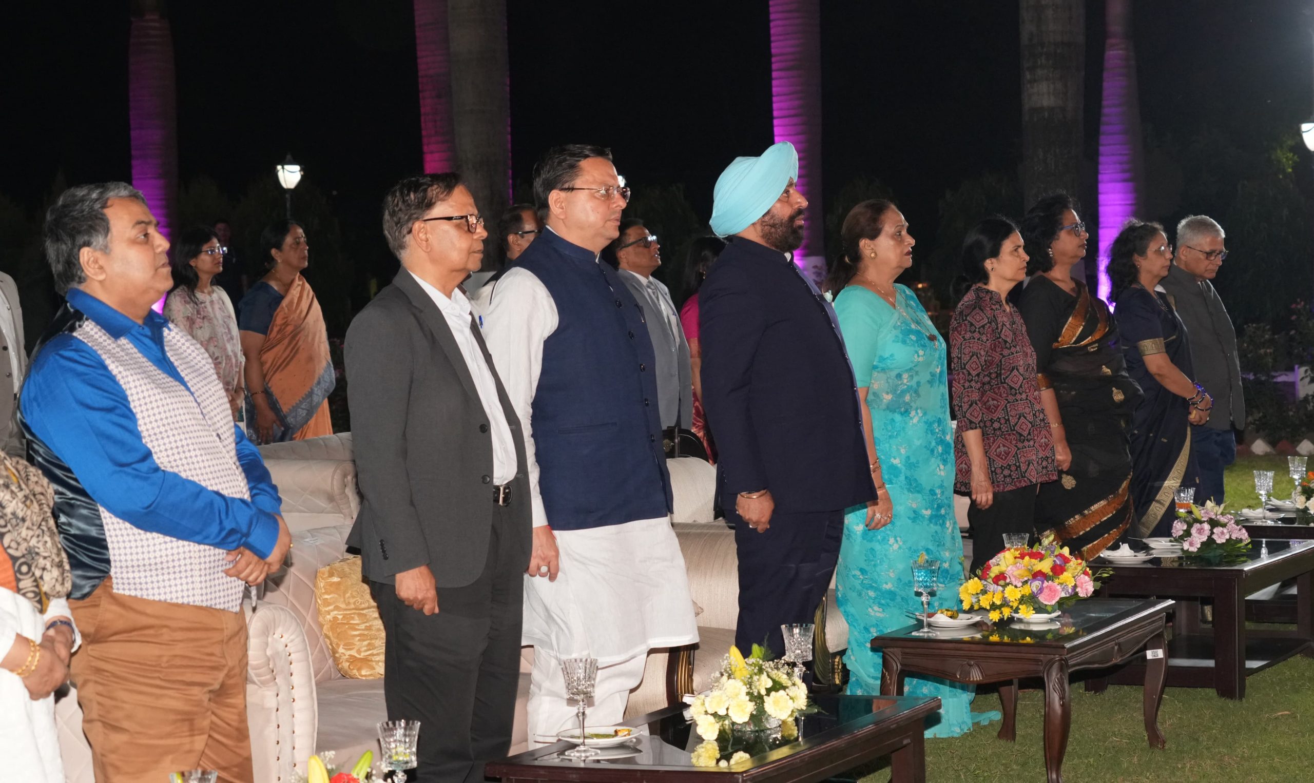 देहरादून 19 मई। राजभवन में 16वें वित्त आयोग के प्रतिनिधिमंडल का भव्य स्वागत उत्तराखंड की लोक संस्कृति से हुआ। राज्यपाल लेफ्टिनेंट जनरल गुरमीत सिंह (से नि) से राजभवन में उत्तराखंड भ्रमण पर आए 16वें वित्त आयोग के अध्यक्ष डॉ. अरविंद पनगढ़िया के नेतृत्व में आयोग के प्रतिनिधिमंडल ने शिष्टाचार भेंट की। इस अवसर पर मुख्यमंत्री श्री पुष्कर सिंह धामी भी मौजूद रहे। 16वें वित्त आयोग का प्रतिनिधिमंडल तीन दिवसीय उत्तराखण्ड दौरे पर है। राजभवन में उनके सम्मान में राजकीय भोज का आयोजन किया गया है। इस अवसर पर सांस्कृतिक संध्या का भी आयोजन किया गया। सांस्कृतिक संध्या में लोक कलाकारों ने उत्तराखंड के पारंपरिक लोक नृत्य की मनमोहक प्रस्तुतियाँ दी जिसमें यहां की समृद्ध लोक परंपराओं की झलक देखने को मिली। इस अवसर पर प्रथम महिला श्रीमती गुरमीत कौर, मुख्य सचिव आनन्द बर्द्धन सहित अनेक गणमान्य लोग मौजूद रहे।