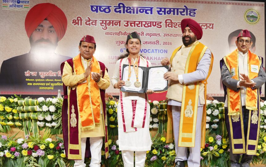 देहरादून 23 जनवरी: राज्यपाल लेफ्टिनेंट जनरल गुरमीत सिंह (से नि) ने शुक्रवार को श्री देव सुमन उत्तराखण्ड विश्वविद्यालय के छठे दीक्षांत समारोह में मुख्य अतिथि के रूप में प्रतिभाग किया। पंडित ललित मोहन शर्मा परिसर, ऋषिकेश में आयोजित दीक्षांत समारोह में राज्यपाल ने उत्तीर्ण हुए विद्यार्थियों को उपाधियां और सर्वोच्च अंक प्राप्त करने वाले विद्यार्थियों को गोल्ड मेडल प्रदान कर शुभकामनाएं दी। कार्यक्रम में उन्होंने उत्कृष्ट सेवाएं दे रहे शिक्षकों को भी सम्मानित किया। इस अवसर पर राज्यपाल ने परिसर में अतिथि गृह, टाइप-5 आवास और बहुउद्देशीय भवन का भी लोकार्पण किया।