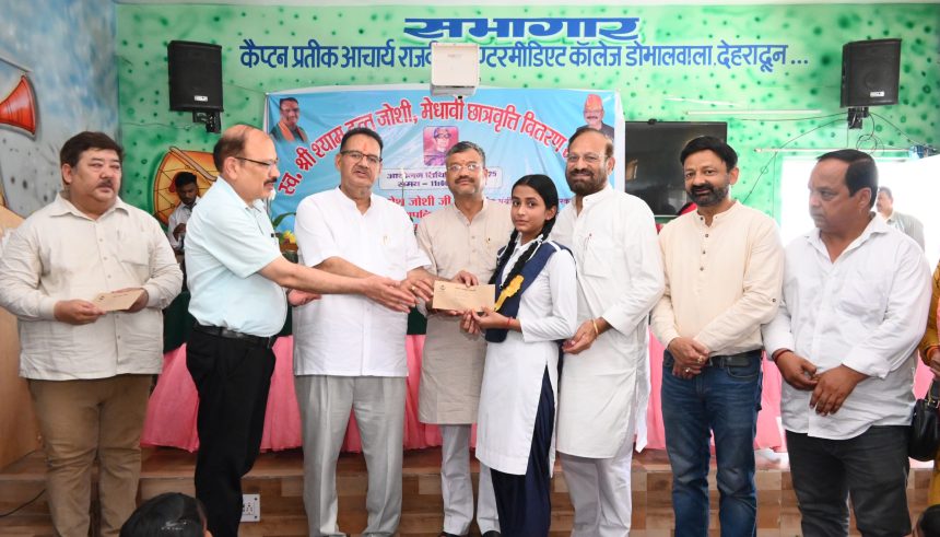 देहरादून, 20 मई। मंगलवार को कैबिनेट मंत्री गणेश जोशी ने राजकीय इंटर कॉलेज डोभालवाला में अपने पिता स्वर्गीय श्याम दत्त जोशी की पुण्यस्मृति में आयोजित मेधावी छात्रवृत्ति वितरण समारोह के दौरान हाईस्कूल एवं इंटरमीडिएट परीक्षा 2025 में प्रथम स्थान प्राप्त करने वाले 07 विद्यार्थियों को पुरस्कृत किया। कार्यक्रम का शुभारम्भ दीप प्रज्जवलन से हुआ और स्वर्गीय श्याम दत्त जोशी को पुष्पांजलि अर्पित करने के बाद छात्राओं ने स्वागत गीत प्रस्तुत किया। अपने सम्बोधन में प्रदेश के कृषि, सैनिक कल्याण एवं ग्राम्य विकास मंत्री गणेश जोशी ने कहा कि शिक्षा ही जीवन में सफलता की कुंजी है। जब विद्यार्थी परिश्रम, समर्पण और अनुशासन के साथ आगे बढ़ते हैं, तो उन्हें जीवन में कोई भी लक्ष्य असंभव नहीं लगता। मंत्री ने यह भी कहा कि यह पहल उनके पिता के प्रति सम्मान और छात्रों के उज्ज्वल भविष्य के प्रति उनकी प्रतिबद्धता का प्रतीक है। मंत्री ने कहा कि किसी भी समाज की पहचान शिक्षा से होती है और शिक्षा के क्षेत्र में और अधिक काम करने की आवश्यकता है तथा जितना मेरा सामर्थ्य है, मेरा यह प्रयास रहा है कि छात्रों को बेहतर सुविधाएं मिलें। उन्होंने अपने स्कूली जीवन के अनुभव भी छात्रों से साझा किए और उन्हें अपने अतीत को कभी न भूलने की सीख दी। काबीना मंत्री ने कहा कि मैं हमेशा समाज के कमज़ोर और गरीब तबके के लिए कार्य करता रहा हूं। मसूरी विधानसभा क्षेत्र में शिक्षा व्यवस्था को सुदृढ़ करने के लिए किए गए प्रयासों की जानकारी देते हुए मंत्री ने बताया कि मतक्षेत्र के अर्न्तगत किसी भी विद्यालय में अब कोई बच्चा ज़मीन पर नहीं बैठता है। उन्होंने कुर्सी-मेज़ उपलब्ध कराने का कार्य पूरा किया है। कैबिनेट मंत्री गणेश जोशी ने विद्यालय सभागार को वातानुकुलित करने, विज्ञान प्रयोगशाल बनाने, बास्केटवॉल कोट बनाने जैसी महत्वपूर्ण घोषणाऐं भी की। कार्यक्रम के दौरान मेयर देहरादून सौरभ थपलियाल, रामशरण नौटियाल, मुख्य शिक्षा अधिकारी विनोद ढौंडियाल, पार्षद मोहन बहुगुणा, मंडल अध्यक्ष प्रदीप रावत, प्रधानाचार्य सुरेंद्र सिंह बिष्ट, भावना चौधरी, मंजीत रावत सहित शिक्षकगण एवं छात्र छात्राएं उपस्थित रहे। इन छात्र छात्राओं को प्रदान की गयी छात्रवृति – कक्षा 10वीं से शिवा (78.06 प्रतिशत), अभिनव चमोली (68.20 प्रतिशत), दिनेश (66.20 प्रतिशत), अनन्या पाल (60.06 प्रतिशत), प्रियांशु (60.02 प्रतिशत) तथा कक्षा 12वीं से वंदना (66.02 प्रतिशत), कपिल