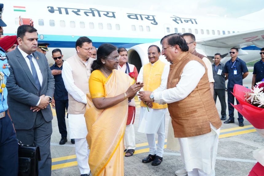 देहरादून। भाजपा राष्ट्रीय सह-कोषाध्यक्ष एवं सासंद राज्यसभा डा.नरेश बंसल ने आज देवभूमि उत्तराखंड आगमन पर देश की राष्ट्रपति श्रीमती द्रोपदी मुर्मू का स्वागत किया। आज महामहिम राष्ट्रपति श्रीमती द्रौपदी मुर्मू तीन दिवसीय प्रवास पर देहरादून पहुंची जहां जौलीग्रांट एयरपोर्ट पर डा. नरेश बंसल ने पुष्प देकर महामहिम का स्वागत किया।
