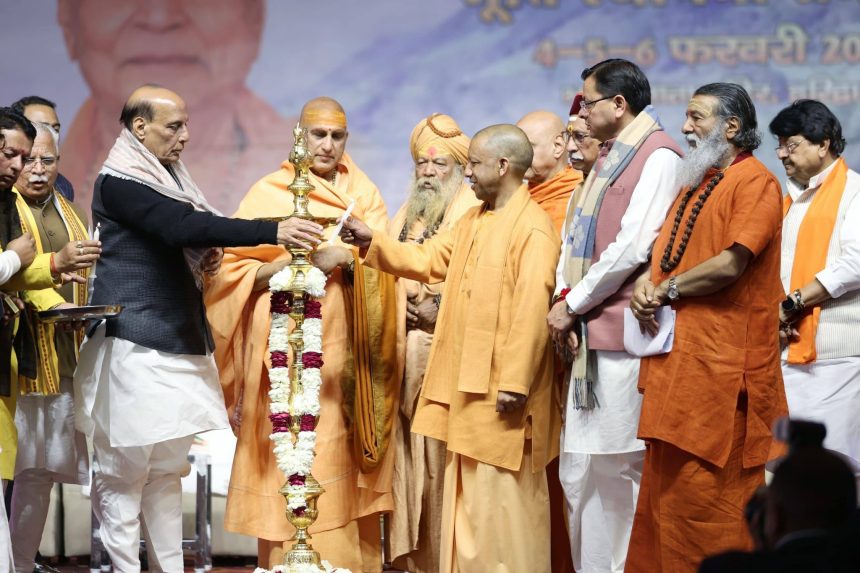 देश के रक्षामंत्री राजनाथ सिंह ने अपने प्रेरक उद्बोधन ने कहा कि भगवद्पादाचार्य परम्परा के दिव्य संवाहक, भारत माता मन्दिर के संस्थापक, पद्मभूषण से अलंकृत, करुणामूर्ति ब्रह्मलीन परमपूज्य श्री स्वामी सत्यमित्रानन्द गिरि महाराज ने अपना सम्पूर्ण जीवन सनातन संस्कृति, राष्ट्रचेतना और मानवता की सेवा के लिए समर्पित कर दिया। उन्होंने आध्यात्मिक साधना को समाज सेवा से जोड़कर एक ऐसा जीवन-दर्शन दिया, जिसने असंख्य लोगों को सेवा, त्याग और करुणा के मार्ग पर अग्रसर किया। उनका तपस्वी जीवन और दिव्य चिन्तन सदैव समाज के लिए प्रेरणा का अमूल्य स्रोत बना रहेगा। जूनापीठाधीश्वर, आचार्यमहामण्डलेश्वर परम पूज्य श्री स्वामी अवधेशानन्द गिरि जी महाराज समाज के लिए प्रेरणा स्रोत हैं। उनके कार्य लोक-कल्याणकारी एवं राष्ट्रहित में सभी को सदैव प्रेरणा देते रहेंगे।