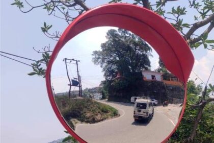 यातायात पुलिस ने ब्लाइंड टर्न मोड़ों पर लगाये कॉन्वेक्स मिरर